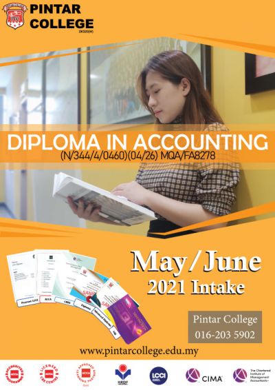 pintar admin2021-03-31T02:22:16+00:00Wish to study an Accounting course? ๐ฑ๐๐๐ ๐ผ๐ ๐ต๐๐ ๐๐๐๐ ๐ฅ๐ ๐ฐ๐ฌ๐ฌ ๐๐๐ ๐๐๐๐๐ ๐๐๐๐! ๐๐ข๐ง๐ญ๐๐ซ ๐๐จ๐ฅ๐ฅ๐๐ ๐โ๐ฌ ๐๐ข๐ฉ๐ฅ๐จ๐ฆ๐ ๐ข๐ง ๐๐๐๐จ๐ฎ๐ง๐ญ๐ข๐ง๐ is designed to provide students with the best possible preparation for a successful accounting pathway and career! ๐๐๐ฐ ๐๐ง๐ญ๐๐ค๐ ๐ฌ๐ญ๐๐ซ๐ญ๐ข๐ง๐ ๐ข๐ง ๐๐๐ฒ/๐๐ฎ๐ง ๐๐๐๐. Our Diploma in Accounting allows progression to professional accounting qualifications offered by ๐ณ๐ช๐ช๐ฐ, ๐จ๐ช๐ช๐จ ๐๐๐ ๐ช๐ฐ๐ด๐จ. You will get a ๐๐จ๐ญ๐๐ฅ ๐จ๐ ๐ ๐๐ฎ๐๐ฅ๐ข๐๐ข๐๐๐ญ๐ข๐จ๐ง๐ฌ! Donโt worry about your study fees! We provide: - PTPTN - Scholarship - Study Loan - KWSP Loan - HRDF Call us at 016-203 5902 for more details!