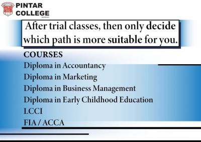 You can attend ๐ฌ๐ก๐จ๐ซ๐ญ ๐๐จ๐ฎ๐ซ๐ฌ๐๐ฌ for #Accounting or #businessmanagement Class, commence from ๐๐ฉ๐ซ๐ข๐ฅ ๐๐๐๐, don’t waste your time. ๐๐ง๐ฅ๐ฒ ๐๐๐๐๐ ๐๐จ๐ซ ๐ ๐ฆ๐จ๐ง๐ญ๐ก๐ฌ, and the fees is transferable to our Diploma Courses once your SPM results released!